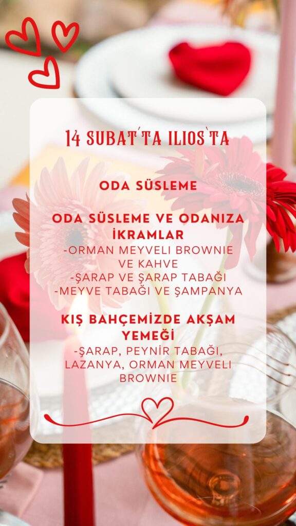 14 Şubat’ta misafirlerimizi, odalarında kendilerine özel olarak hazırlanan romantik süslemelerle karşılıyoruz.